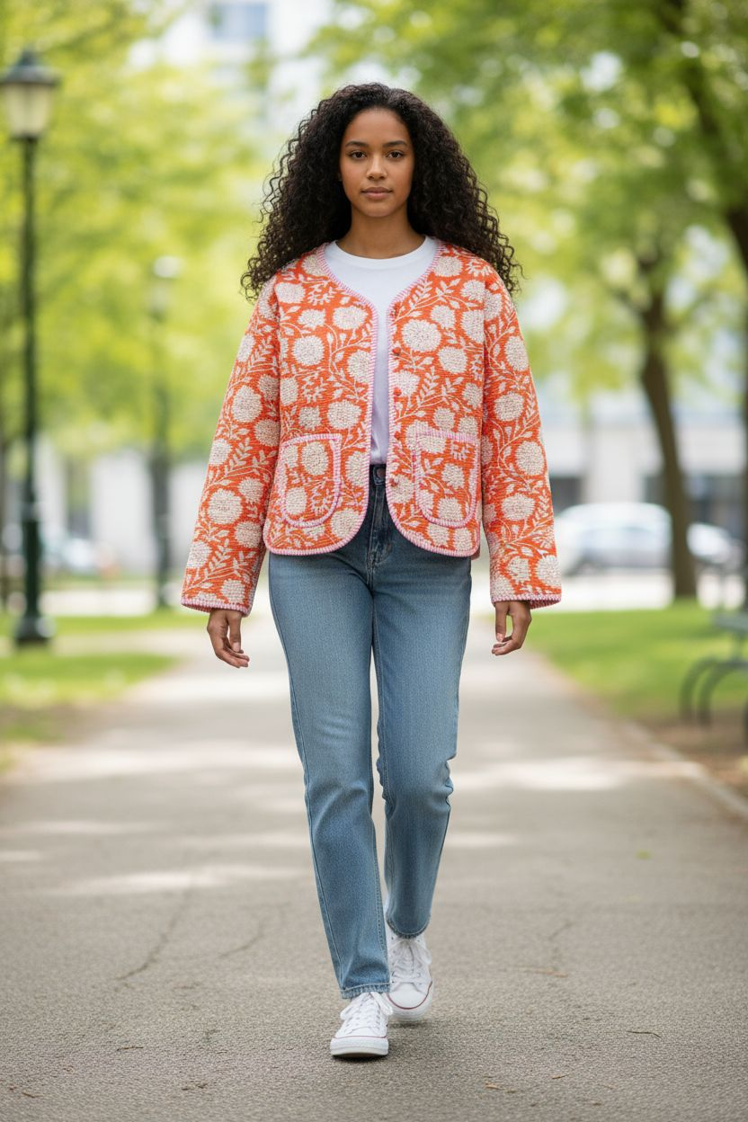 Onze katoenen jasjes zijn met de hand gemaakt met prachtige prints geïnspireerd op het Mughal tijdperk. De traditionele patronen brengen eeuwenoud vakmanschap samen met een moderne uitstraling.