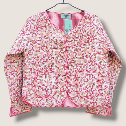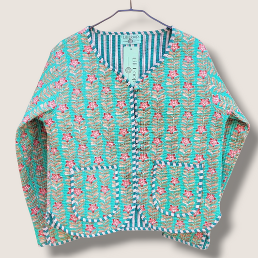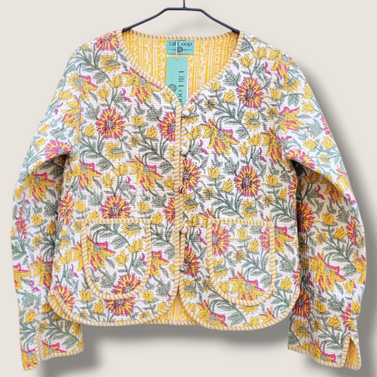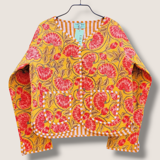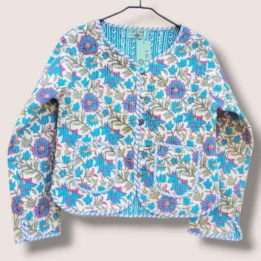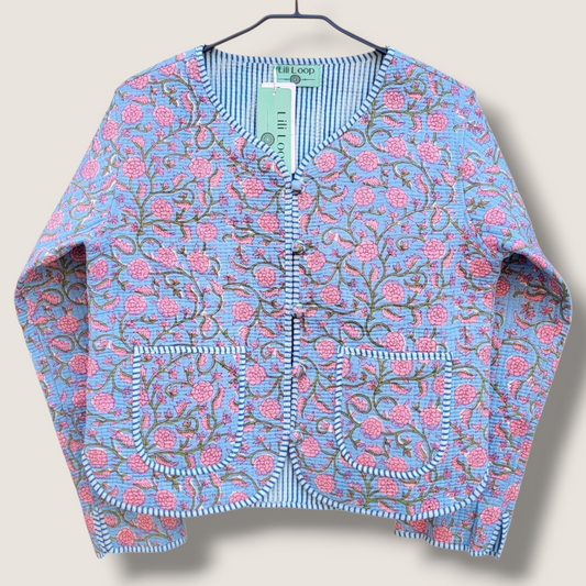 Het lichte quiltwerk maakt het jasje ideaal als laagje in de lente en zomer, of juist als stijlvol vest in de herfst en winter.