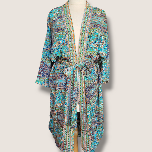 Met rijke kleuren, unieke prints en een comfortabele one-size fit, zijn onze kimono’s ontworpen om moeiteloos te dragen – van ontspannen ochtenden tot stijlvolle avonden. 🌙 Elke kimono vertelt een verhaal van traditie, ambacht en schoonheid, en is met liefde vervaardigd door lokale makers.