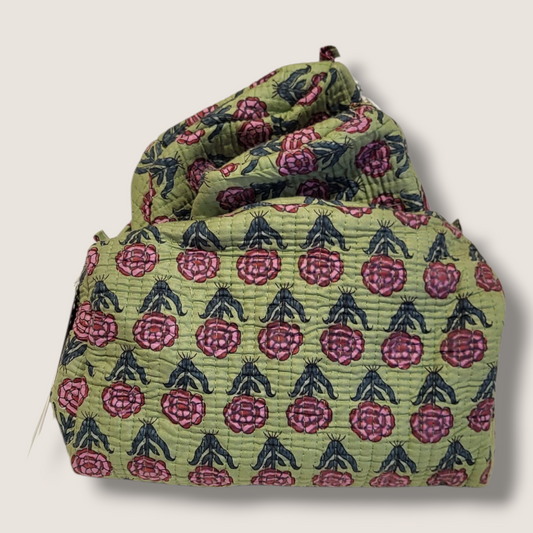 Onze toilettassencollectie bestaat uit handgemaakte sets van drie, elk in een uniek Indiaas design. Van kleurrijke patronen tot fijne details – elke set is met zorg vervaardigd door ambachtslieden en ontworpen voor stijl én gebruiksgemak.