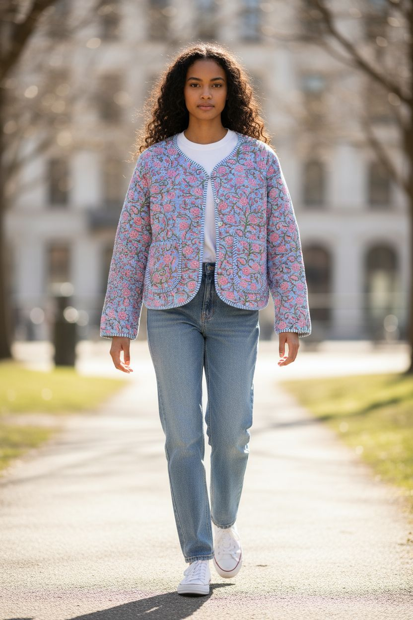 -Het lichte quiltwerk maakt het jasje ideaal als laagje in de lente en zomer, of juist als stijlvol vest in de herfst en winter.