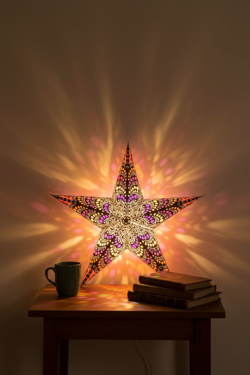 In India worden deze sterren vaak opgehangen tijdens Diwali, het feest van het licht, als symbool van hoop, vreugde en vernieuwing. Bij ons brengen ze diezelfde warmte en magie in huis, het hele jaar door.