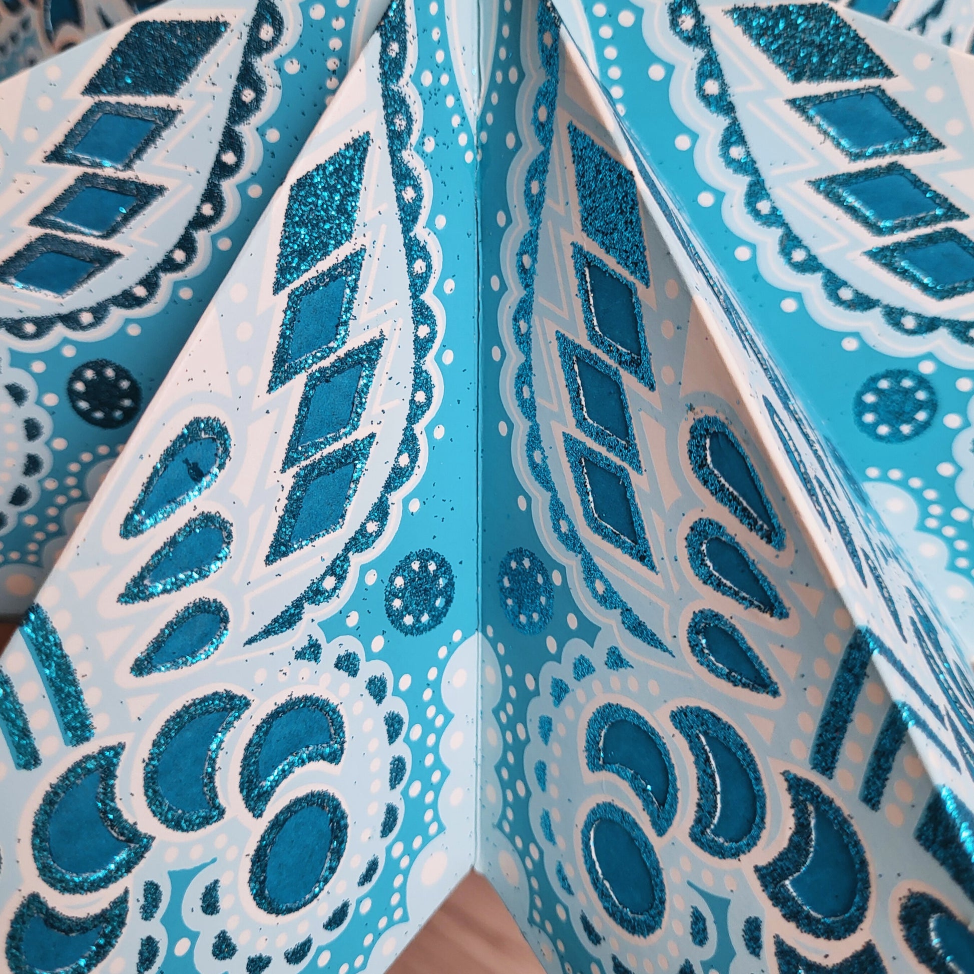 Onze papieren sterren van 60 cm doorsnede worden met de hand gemaakt in India . Een prachtig ambacht dat vakmanschap, creativiteit en traditie samenbrengt. Elke ster begint als een vel fijn, sterk tissuepapier dat zorgvuldig wordt uitgesneden, geperforeerd en bedrukt met kleurrijke patronen.