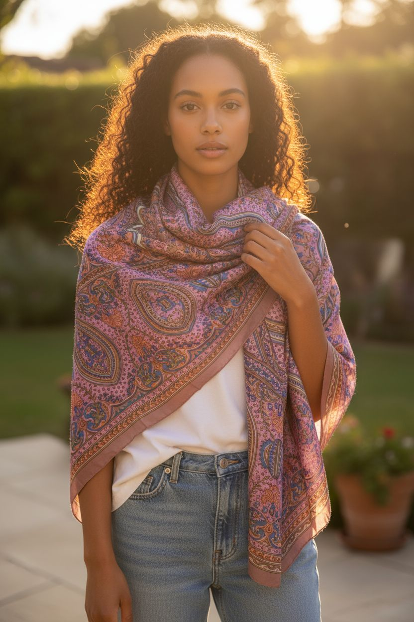Elke sjaal vertelt een verhaal van vakmanschap en verfijning, rechtstreeks uit India, waar traditionele technieken samenkomen met moderne kleuren en patronen.