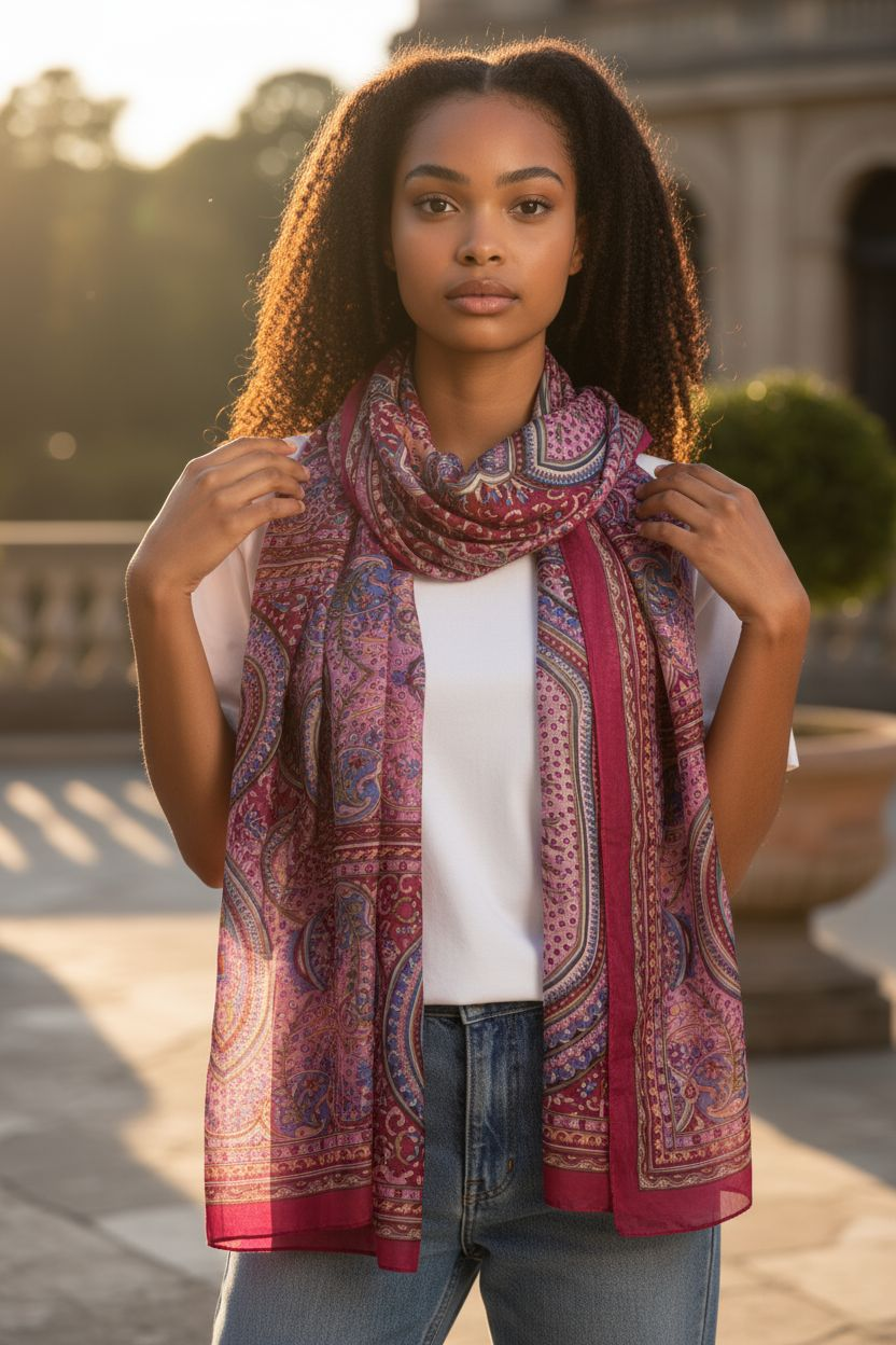 Elke sjaal vertelt een verhaal van vakmanschap en verfijning, rechtstreeks uit India, waar traditionele technieken samenkomen met moderne kleuren en patronen.